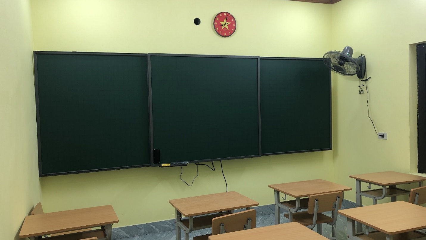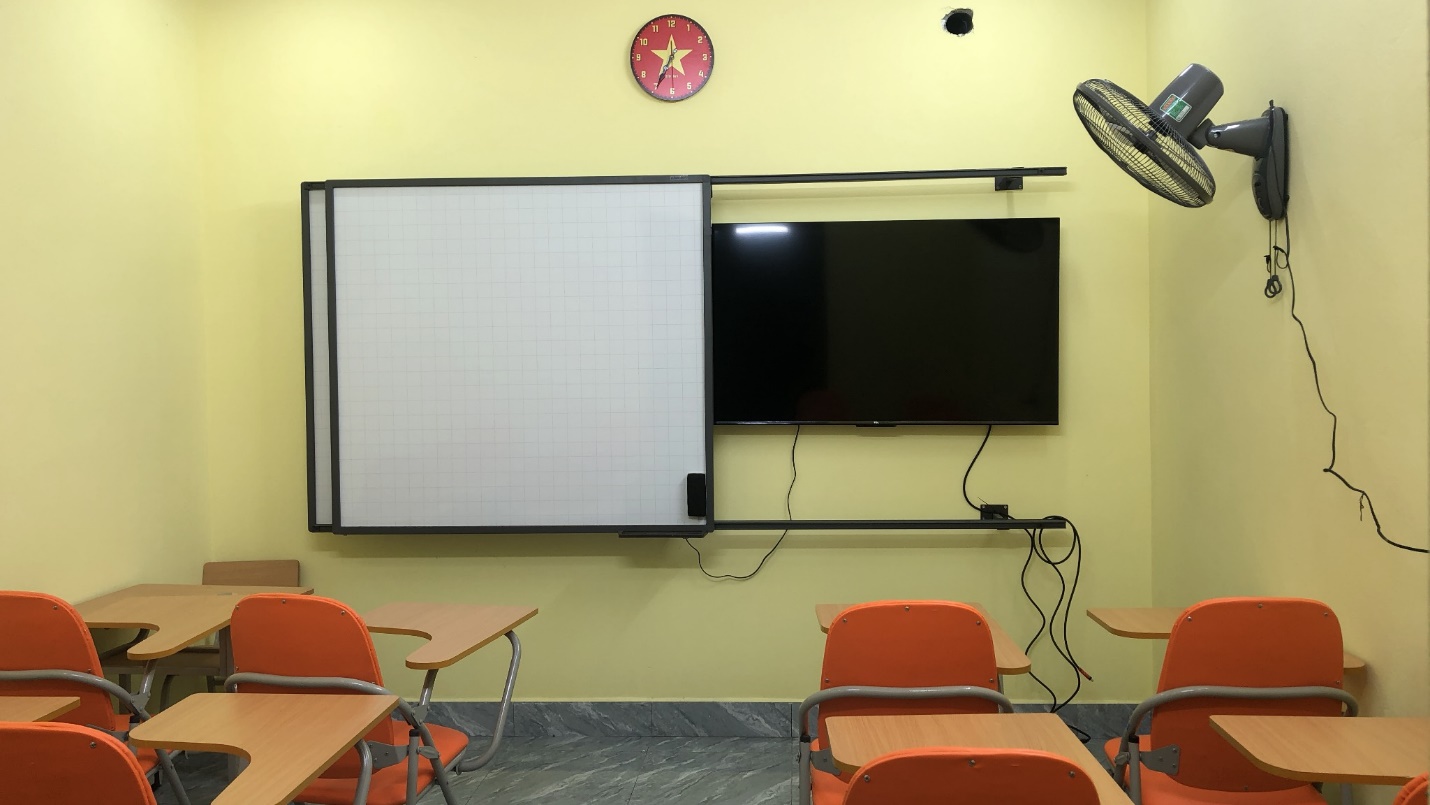Các lớp học trang bị máy lạnh, màn hình ti vi cỡ lớn để phục vụ cho quá trình giảng dạy điện tử.